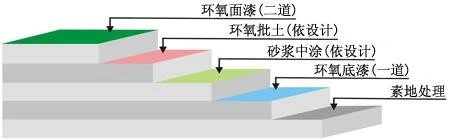 ④环氧中涂:将环氧树脂加入适量的石英砂,用镘刀将其均匀涂布数道;